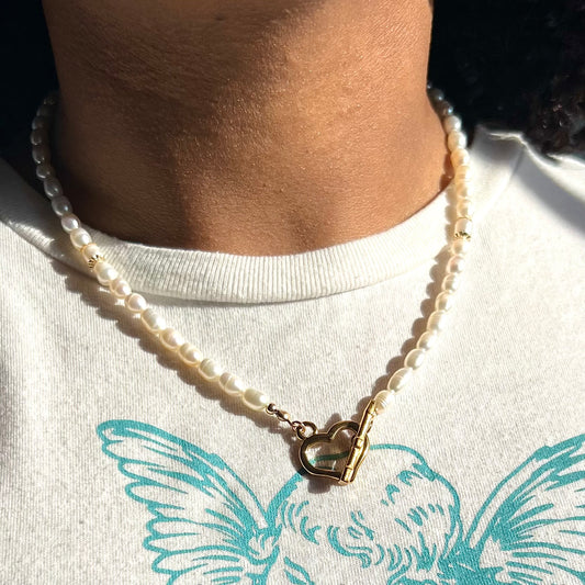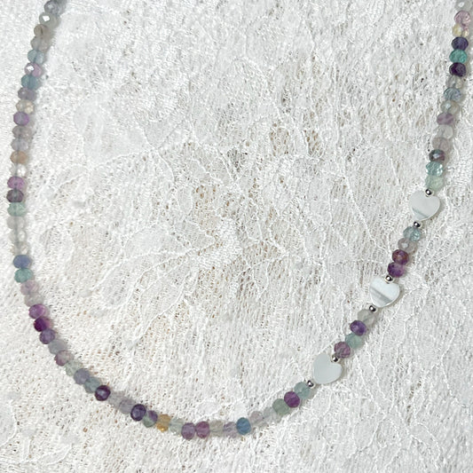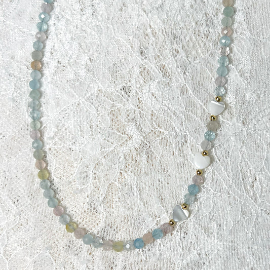Beryl ~Aquamarine & Morganite~ x Mother of Pearl Heart Necklace